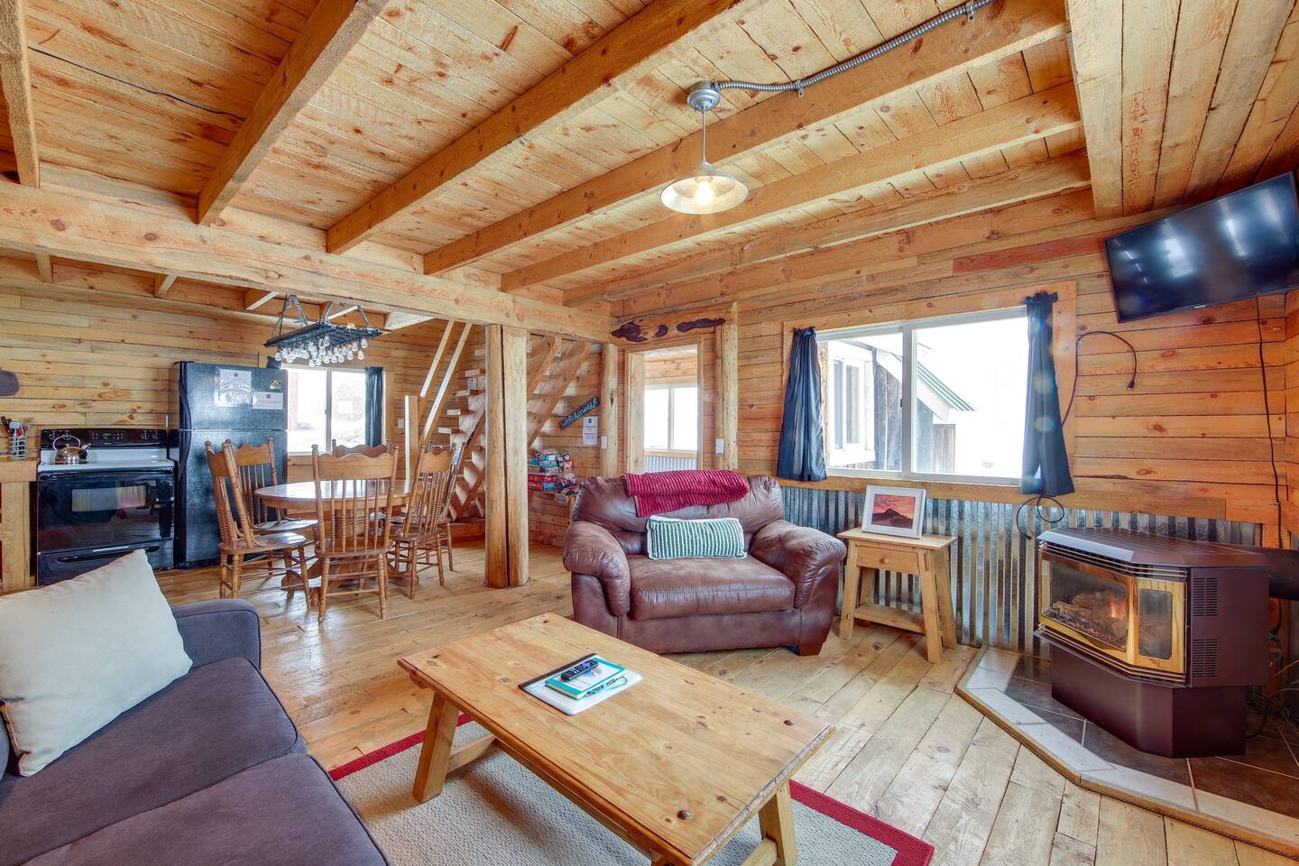Escape to Boondocker Cabin, a cozy and spacious retreat at the base of Rabbit Ears Pass. With room for 8 in beds and up to 10 with the pullout couch, it’s the perfect place to gather your crew and breathe in the mountain air. Whether you're exploring Steamboat or staying put to stargaze, this cabin offers comfort, connection and wide-open skies. What You’ll Love: 🛏️ Sleeps up to 10: 1 private queen bedroom, 3 queen beds in the loft, plus a queen pullout sofa 🔥 Gas fireplace: Perfect for snowy evenings or cool summer nights 🍳 Full kitchen: Stocked for cooking (no dishwasher) 📶 Wi-Fi throughout: Great for staying connected (cell service is limited) 🧸 Little Tracks Loft: A play nook with toys and books for younger guests 🌄 Big sky views: Soak up the sunset or watch the stars come out ♨️ Hot tub access: Head to the Hitchin’ Post clubhouse for a soak or game night ✔️ Plenty of room to park your trailer. Bring the toys, sleds, or even horses. This cabin is ideal for families, group getaways or snowmobile weekends with friends.
